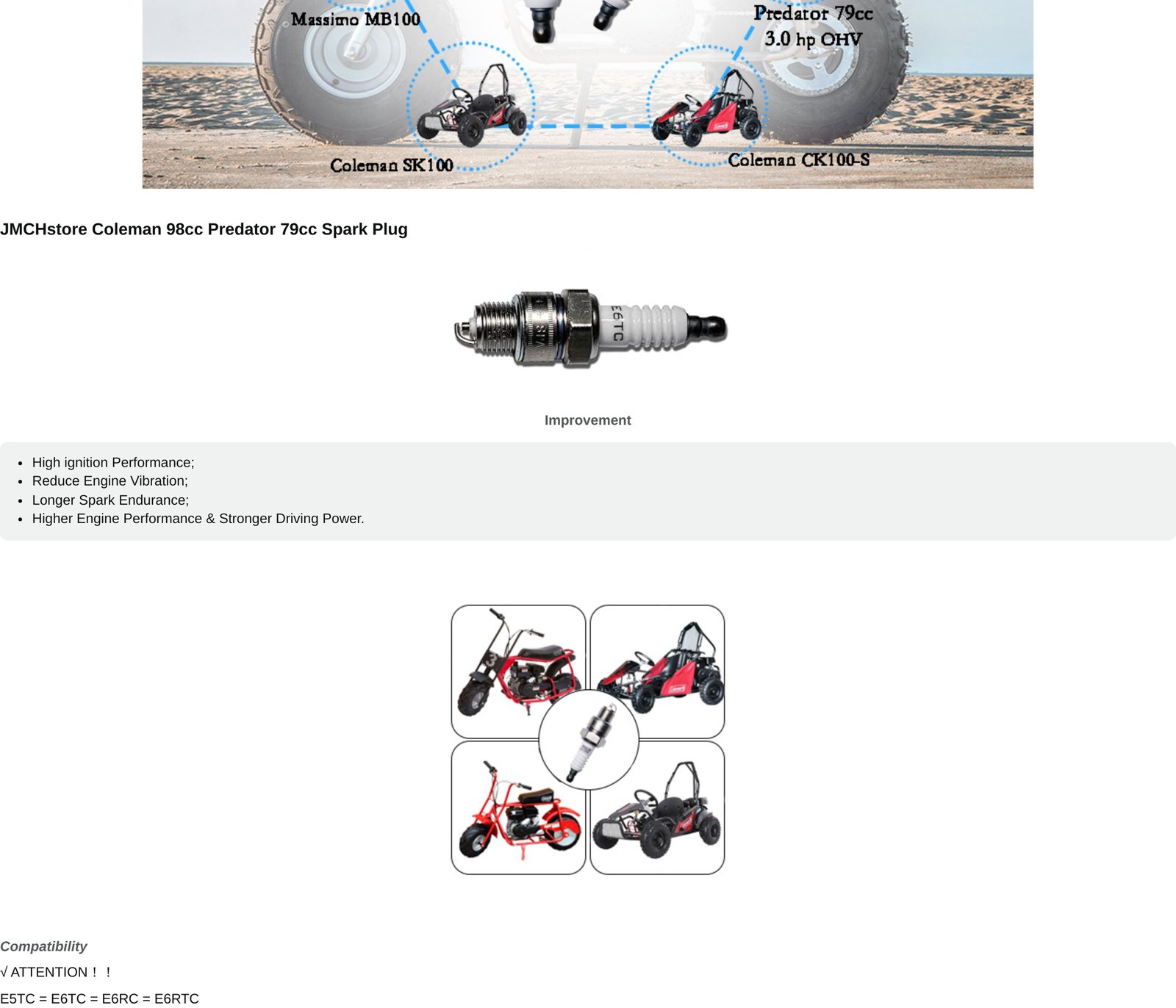 • Attention! Spark plug E5TC=E6TC=E6RC All is the same.
