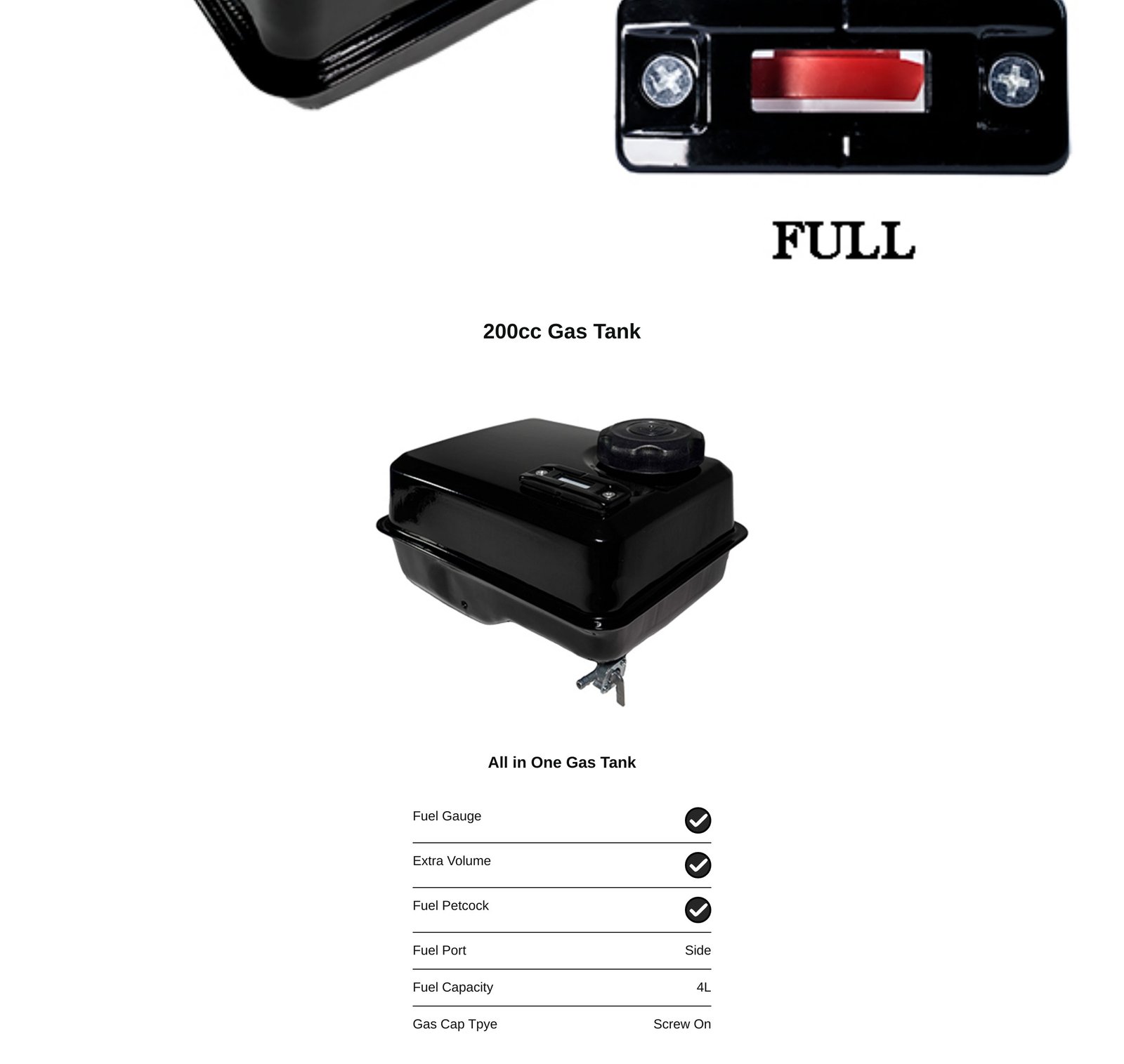 - Threaded Gas Port; In order to tackle the root causes of leakage (bayonet fuel port type design tend to leak fuel) , We Upgraded our New version fuel tank to Threaded Design (with Screw on Gas Cap Tighten to click & Vent Hole) to proof leakage.