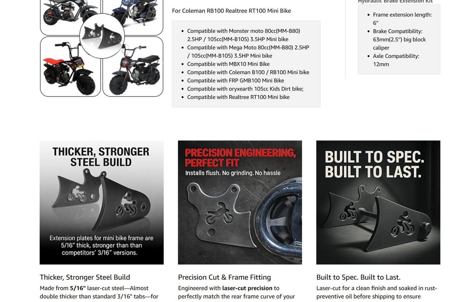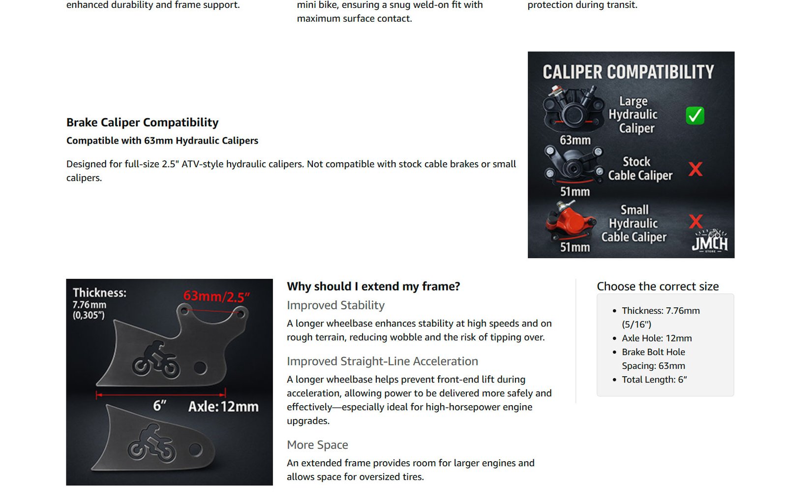 • Extended Wheelbase Design: Adds 6 inches to your mini bike’s wheelbase, improving overall stability, control, and ride comfort