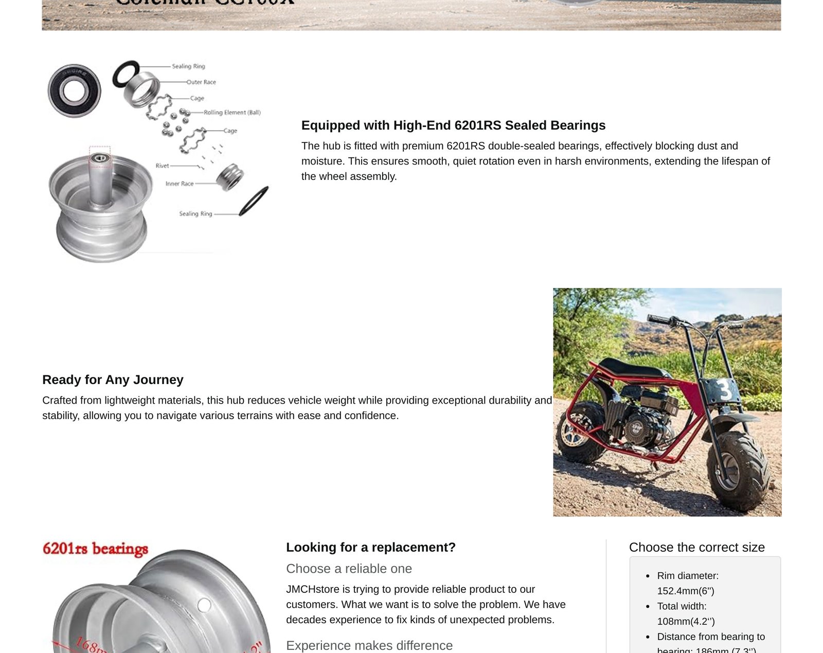 • JMCHstore 𝟔” 𝐖𝐡𝐞𝐞𝐥 𝐑𝐢𝐦 for Coleman CT100U CC100X 98cc kids mini bike, ensuring a perfect fit and easy installation
