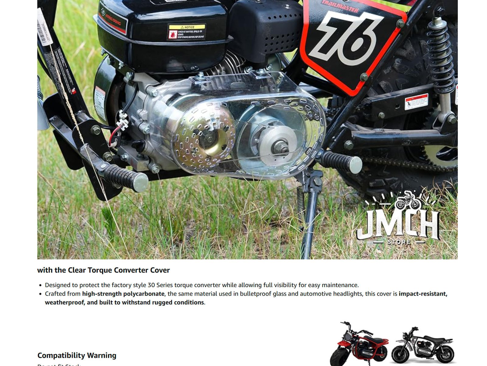 - JMCHstore Transparent Clear Torque Converter Cover Compatible with OEM Trailmaster MB200 Hurricane 200X PRO Monster Dog II Mini bike parts