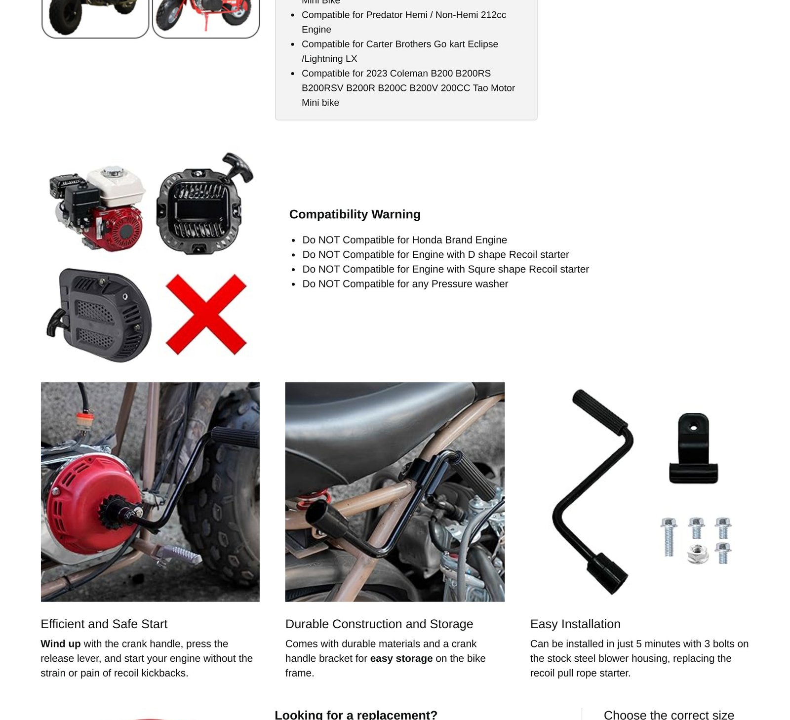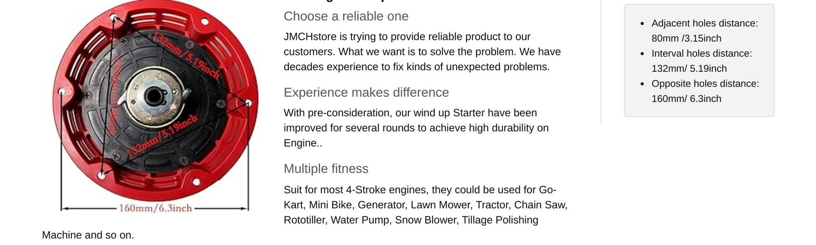 • Efficient and Safe Start: Wind up with the crank handle, press the release lever, and start your engine without the strain or pain of recoil kickbacks.