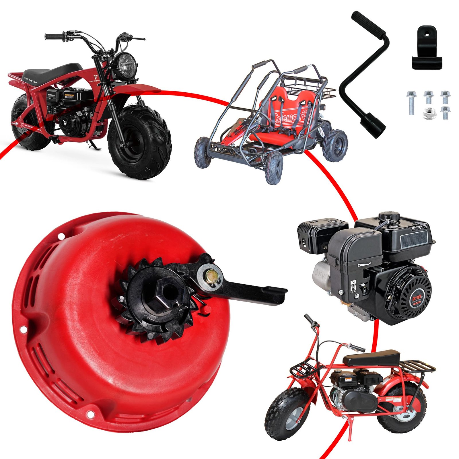 Easy Quick Fast Hand Crank Start Recoil Starter Assembly for Predator 212 Coleman B200R CT200U 200cc Mini Bike, KT196 Go Kart Pull Cord Start 196 Hisun Engine (Red)