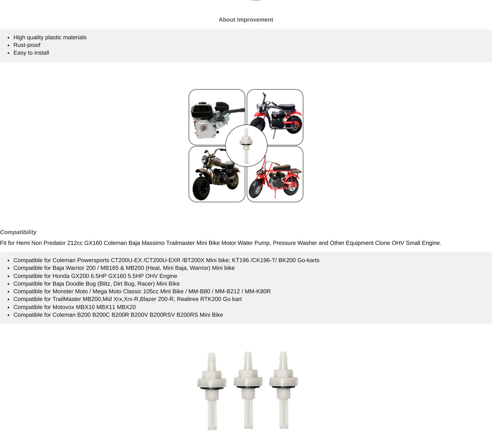 - JMCHstore Fuel Tank joint Filter Compatible with Coleman CT200U CT200U-EX; Baja MB165 MB200 (Baja Heat, Mini Baja, Baja Warrior 200) Doodlebug Mini Bike;