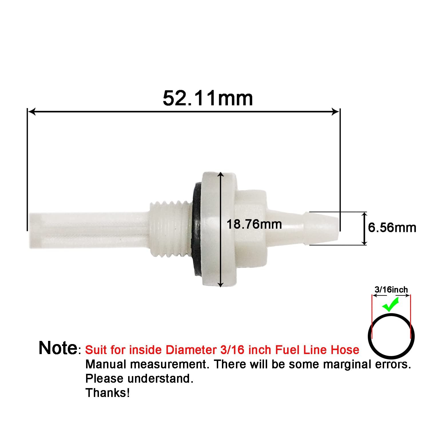 - Compatible with size:ID x OD:3/16” x 13/32” , internal diameter 1/4” fuel /gas line hose