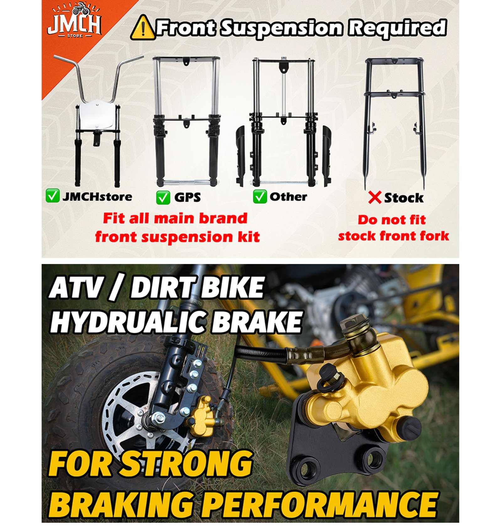 - 𝐒𝐮𝐬𝐩𝐞𝐧𝐬𝐢𝐨𝐧 𝐍𝐞𝐞𝐝𝐞𝐝!!! Comes with several bracket options to fit different brand front suspension kits; please refer to the compatibility chart image (Do not work with stock fork)