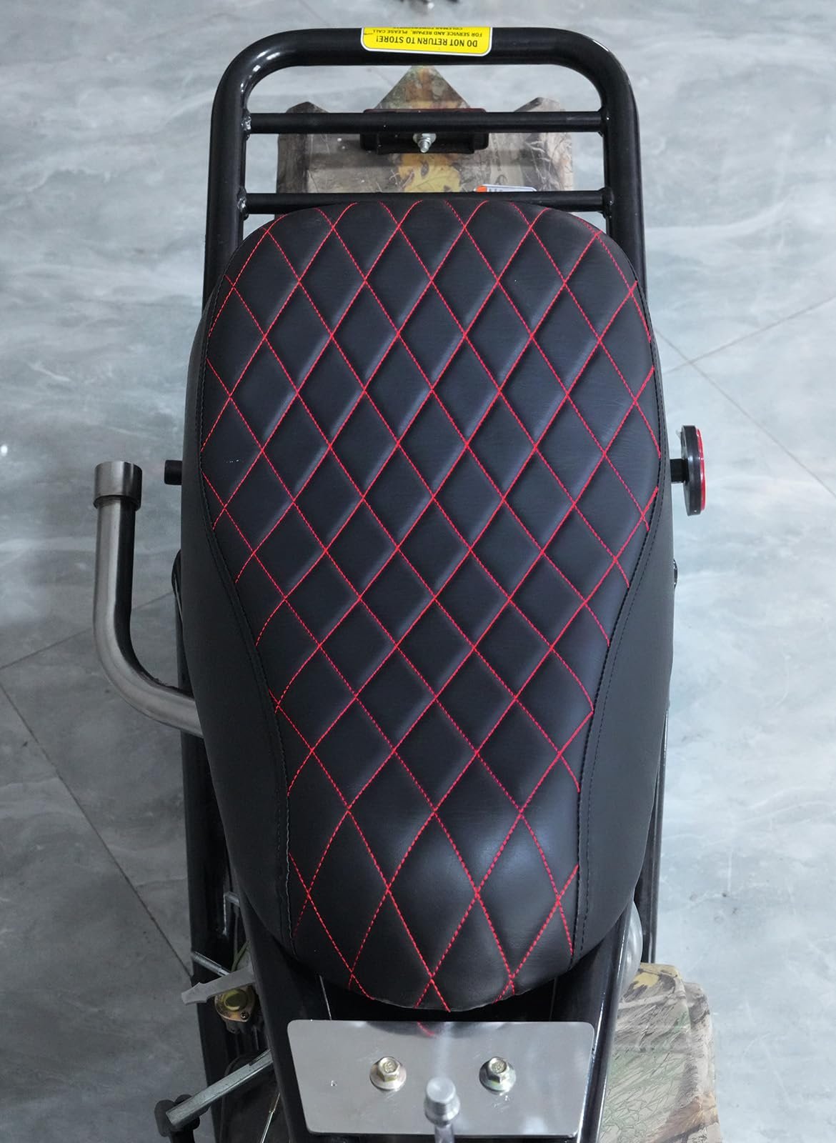 Enhance your mini bike with the stylish and comfortable Diamond Stitch Retro Mini Bike Seat with Red Thread. This seat features a classic diamond stitch pattern with Red threading, adding a touch of vintage charm to your mini bike. Crafted from high-quality materials and filled with comfortable foam, it ensures a pleasant ride even on long journeys. Suitable for most mini bike models, this seat is easy to install, making it the perfect upgrade for improving both the look and comfort of your mini bike.