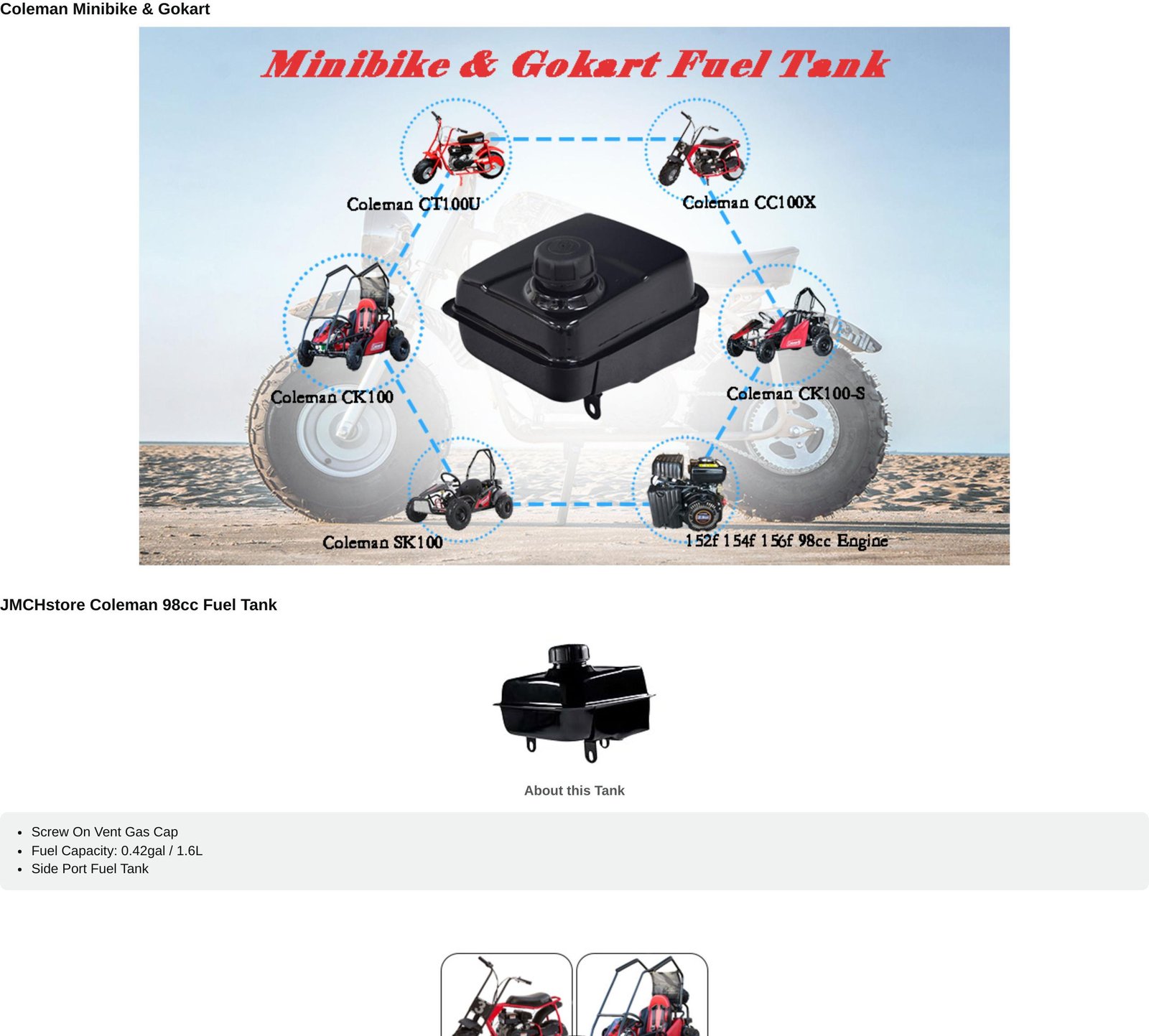 • JMCHstore OEM Fuel Tank For Coleman CT100U & CC100X Mini bike;